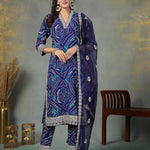 Blue Bandhani Print & Embroidered Muslin Straight Kurta Pant Dupatta Set (Pre-Order)