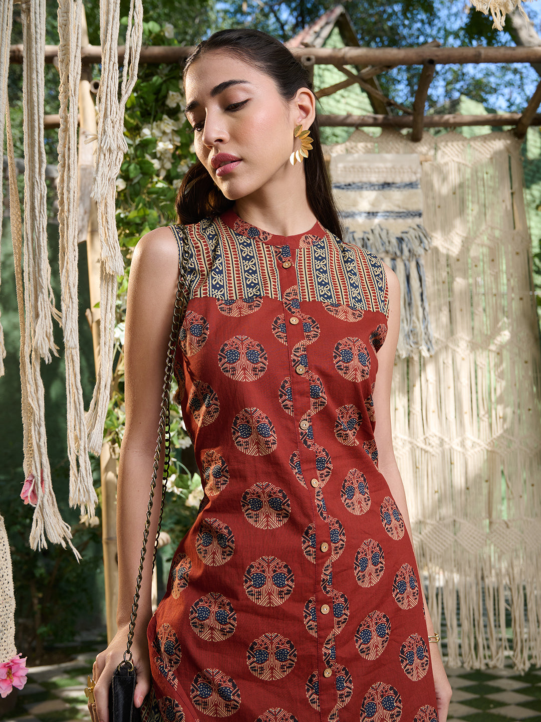 Maroon Ajrakh Printed Cotton Straight Kurta Pant Set (Pre-Order)