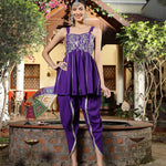 Violet Solid & Embroidered Rayon A-Line Kurti Dhoti Pant Set (Pre-Order)