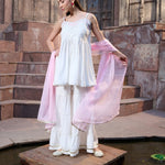 White Solid & Embroidered Rayon Short Kurti Sharara Dupatta Set (Pre-Order)