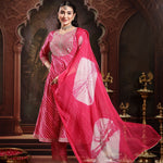 Pink Leheriya Printed & Embroidered Cotton Anarkali Kurta Pant Dupatta Set (Pre-Order)