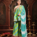 Green Leheriya Printed & Embroidered Cotton A-Line Short Kurti Sharara Dupatta Set (Pre-Order)