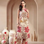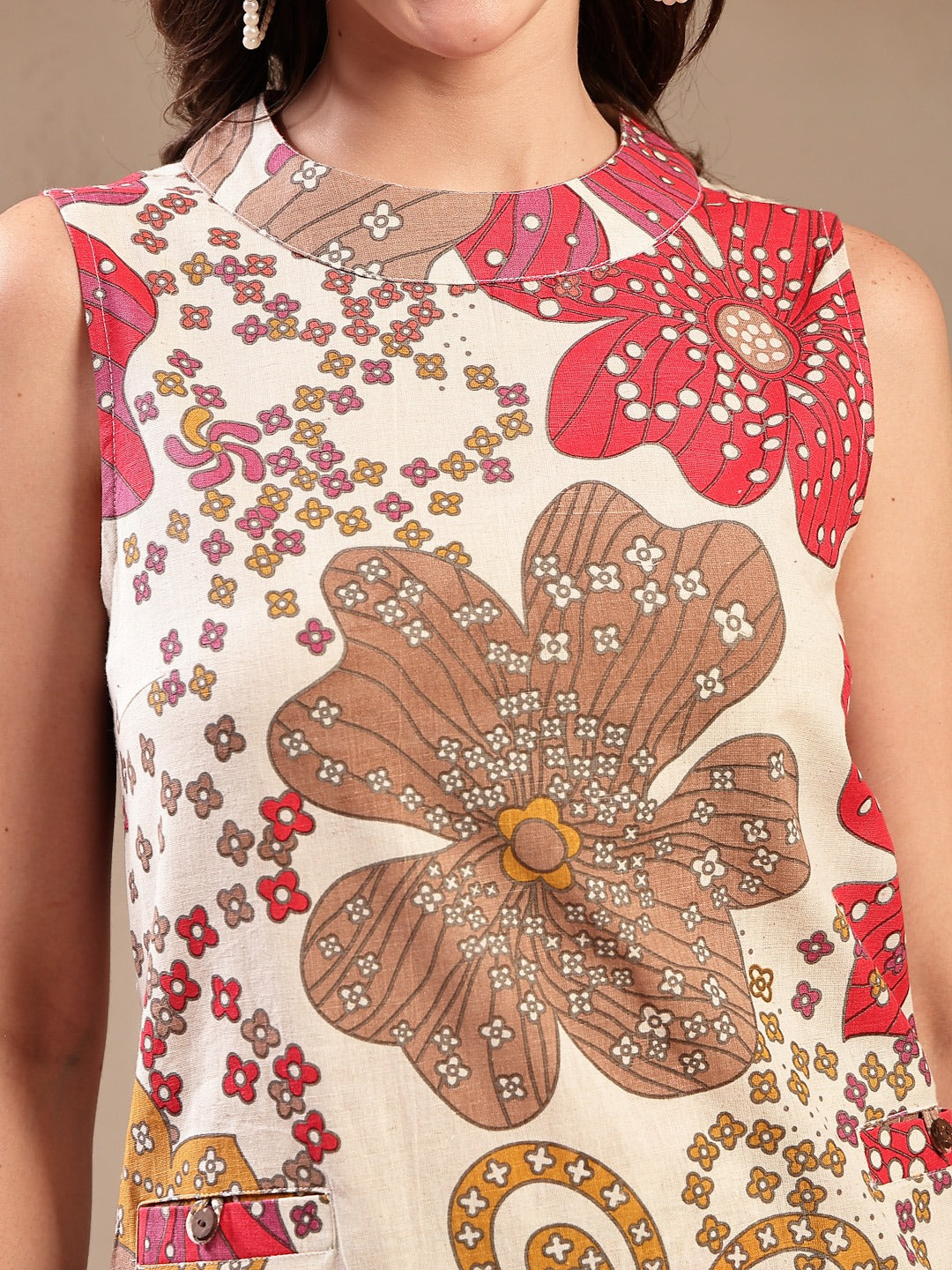 White Floral Printed Cotton Flax Straight Kurta Palazzo Set (Pre-Order)