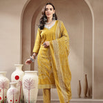 Yellow Bandhani Printed Cotton Blend Straight Kurta Pant Dupatta Set (Pre-Order)