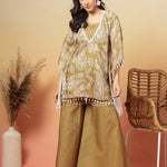 Green Paisley Printed Cotton Blend Crop Top Kaftan Sharara Set (Pre-Order)