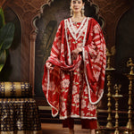 Maroon Floral Printed Cotton Flared Kurta Pant Dupatta Set (Pre-Order)