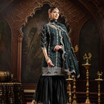 Green Solid & Embroidered Chinon Straight Kurta Sharara Dupatta Set (Pre-Order)