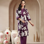 Purple Floral Printed Cotton Straight Kurta Palazzo Set (Pre-Order)