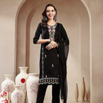 Black Solid & Embroidered Rayon Straight Kurta Pant Dupatta Set (Pre-Order)