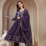 Purple Ethnic Printed Cotton Blend Anarkali Kurta Pant Dupatta Set (Pre-Order)