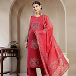 Cotton Calf Length Printed Sleeveless Round Neck Straight Kurta Suit Set With Dupatta (Pre-Order)