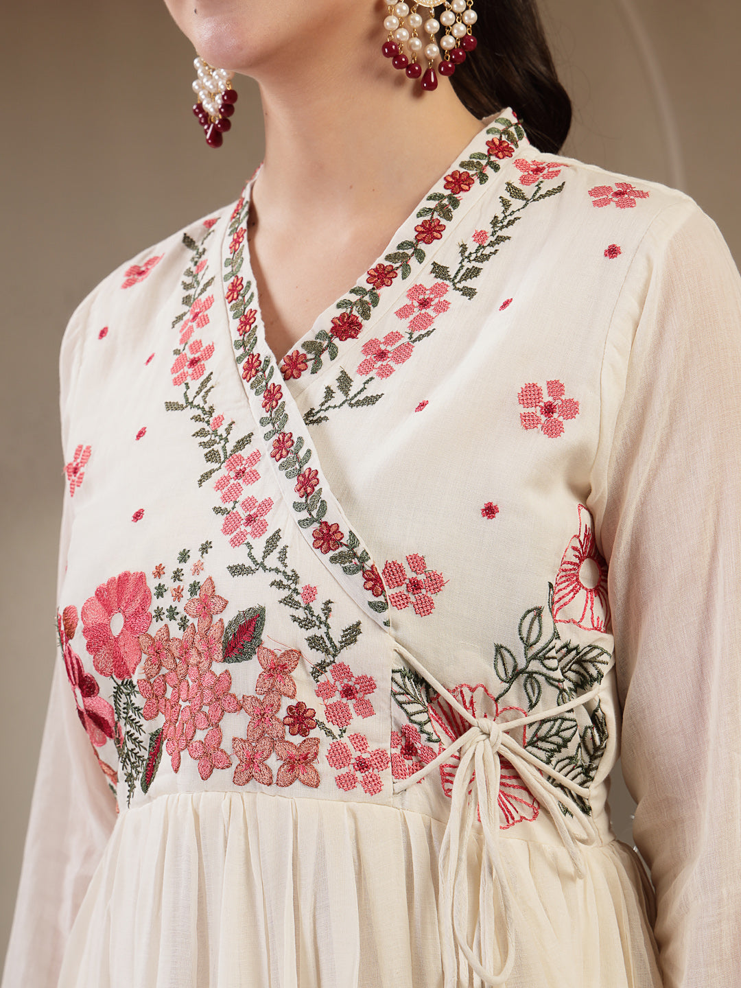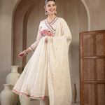 Cotton Calf Length Solid Full Sleeves Anrakha Neck Flared Kurta Suit Set With Dupatta (Pre-Order)