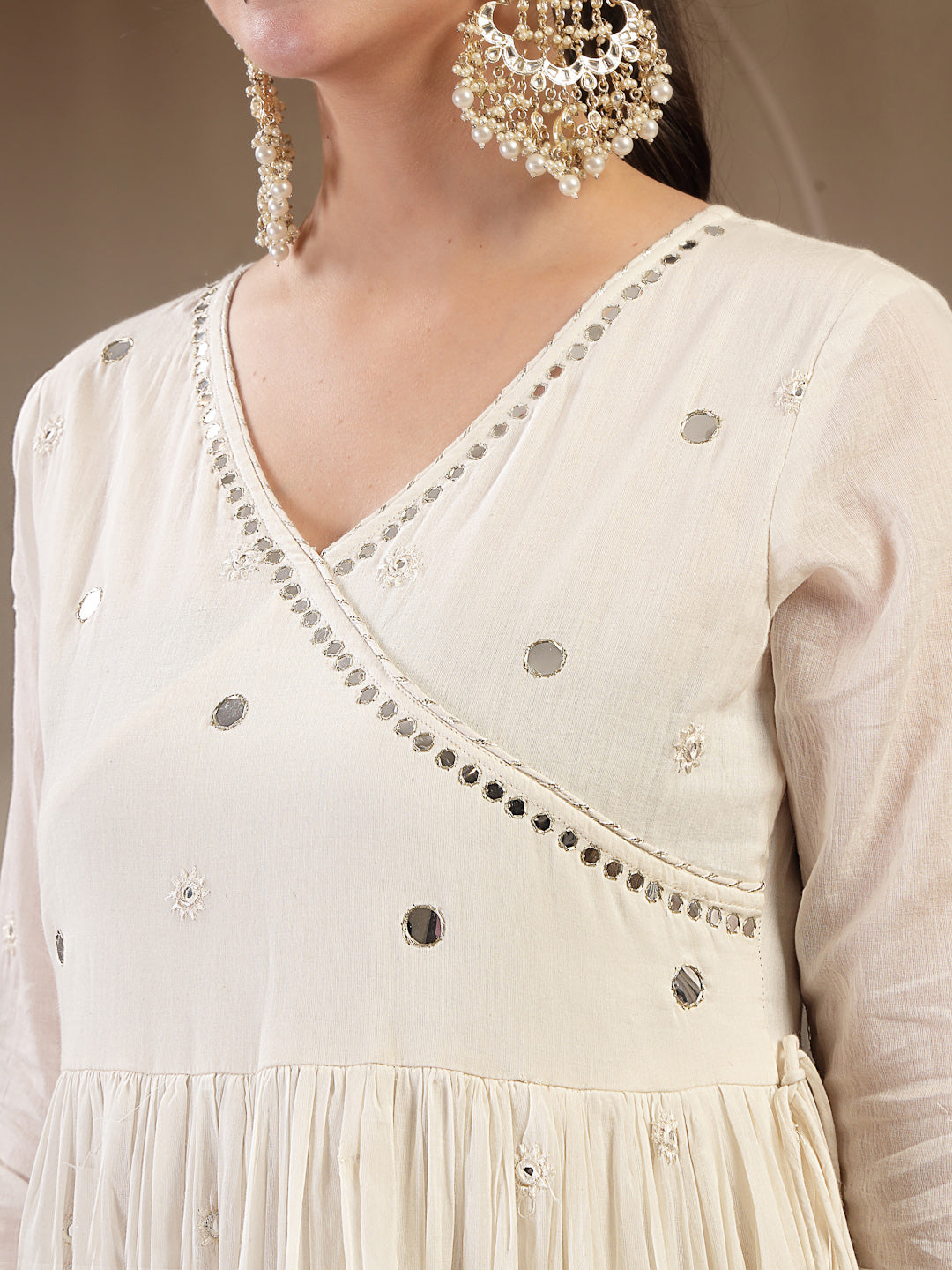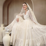 Malmal Calf Length Solid Full Sleeves Anrakha Neck Anarkali Kurta Suit Set With Dupatta (Pre-Order)