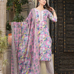Pink Straight Cotton Printed Kurta With Pant And Dupatta