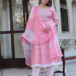 Pink Anarkali Rayon Printd Embroiderd Kurta With Pant And Dupatta