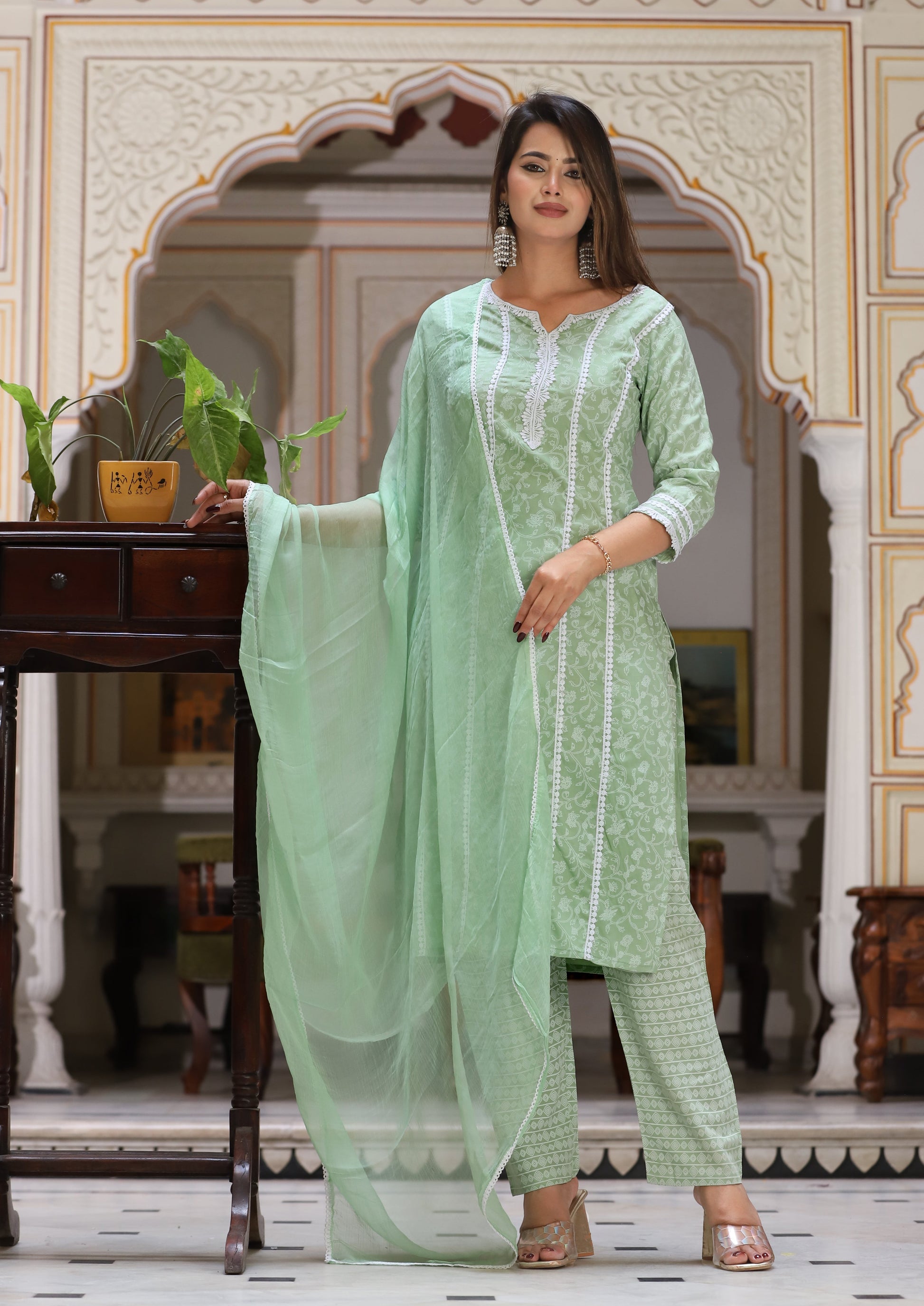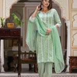 Green Straight Rayon Printed Kurta With Pant And Dupatta
