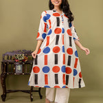 Off White Aline Cotton Printed Kurta With Pant
