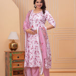 Pink Anarkali Rayon Printd Embroiderd Kurta With Pant And Dupatta
