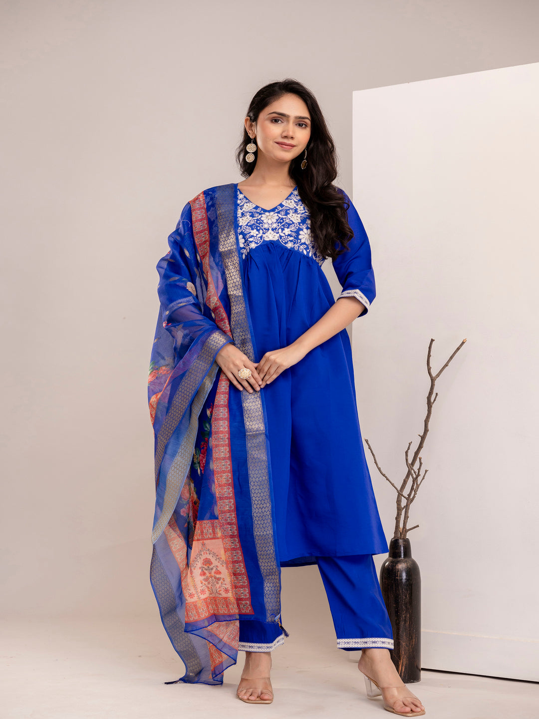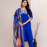 Blue Silk Cotton Printd Embroiderd Kurta With Pant And Dupatta