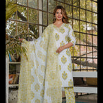 Yellow Straight Cotton Printed Kurta With Pant And Dupatta