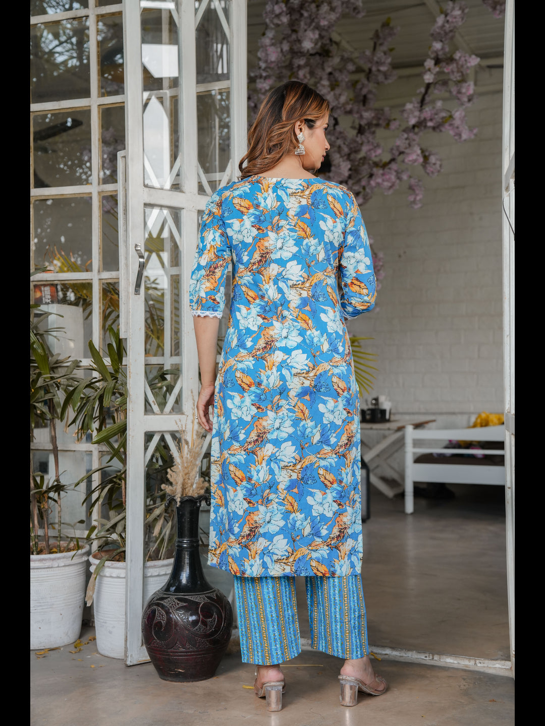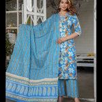 Blue Straight Cotton Printed Kurta With Pant And Dupatta