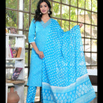 Aqua Straight Printed Cotton Kurta Bottom With Dupatta
