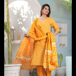 Mustard Straight Printed Cotton Kurta Bottom With Dupatta