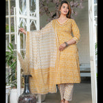 Mustard Straight Printed Cotton Kurta Bottom With Dupatta