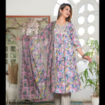 Pink Alia Cut Printed Cotton Kurta Bottom With Dupatta