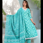 Green Printed A-Line Cotton Kurta Bottom With Dupatta