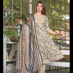 Yellow Printed Anarkali Cotton Kurta Bottom With Dupatta