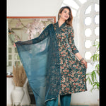 Teal A-Line Rayon Printed Kurta Bottom With Dupatta