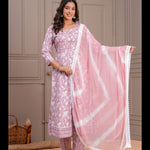 Pink Printed Anarkali Rayon Kurta With Pant And Dupatta