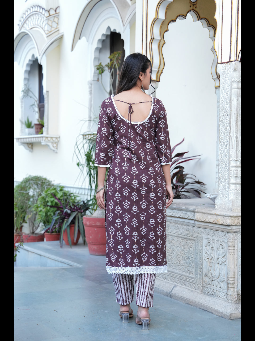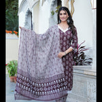 Brown Printed Straight Pure Cotton Kurta With Pant And Dupatta