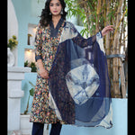 Blue Printed A-Line Rayon Kurta With Pant And Dupatta