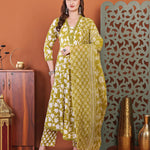 Brown Anarkali Cotton Printed Selfdesign Kurta With Pant And Dupatta