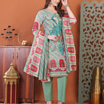 Green Straight Cotton Printed Embellished Kurta With Pant And Dupatta