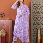Purple Anarkali Cotton Printed Selfdesign Kurta With Pant And Dupatta