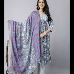 Blue Alia Cut Cotton Printed Kurta With Pant And Dupatta