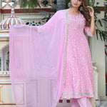 Pink Anarkali Rayon Printed Embroiderd Kurta With Pant And Dupatta