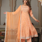 Orange Anarkali Rayon Printed Embroiderd Kurta With Pant And Dupatta