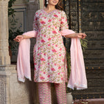 Pink Straight Cotton Printed Embroidered Kurta With Pant And Dupatta