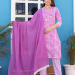 Pink Straight Cotton Printed Embroidered Kurta With Pant And Dupatta