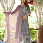 Grey Anarkali Rayon Printed Embroidered Kurta With Pant Dupatta