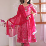 Pink Anarkali Rayon Printed Embroidered Kurta With Pant Dupatta