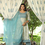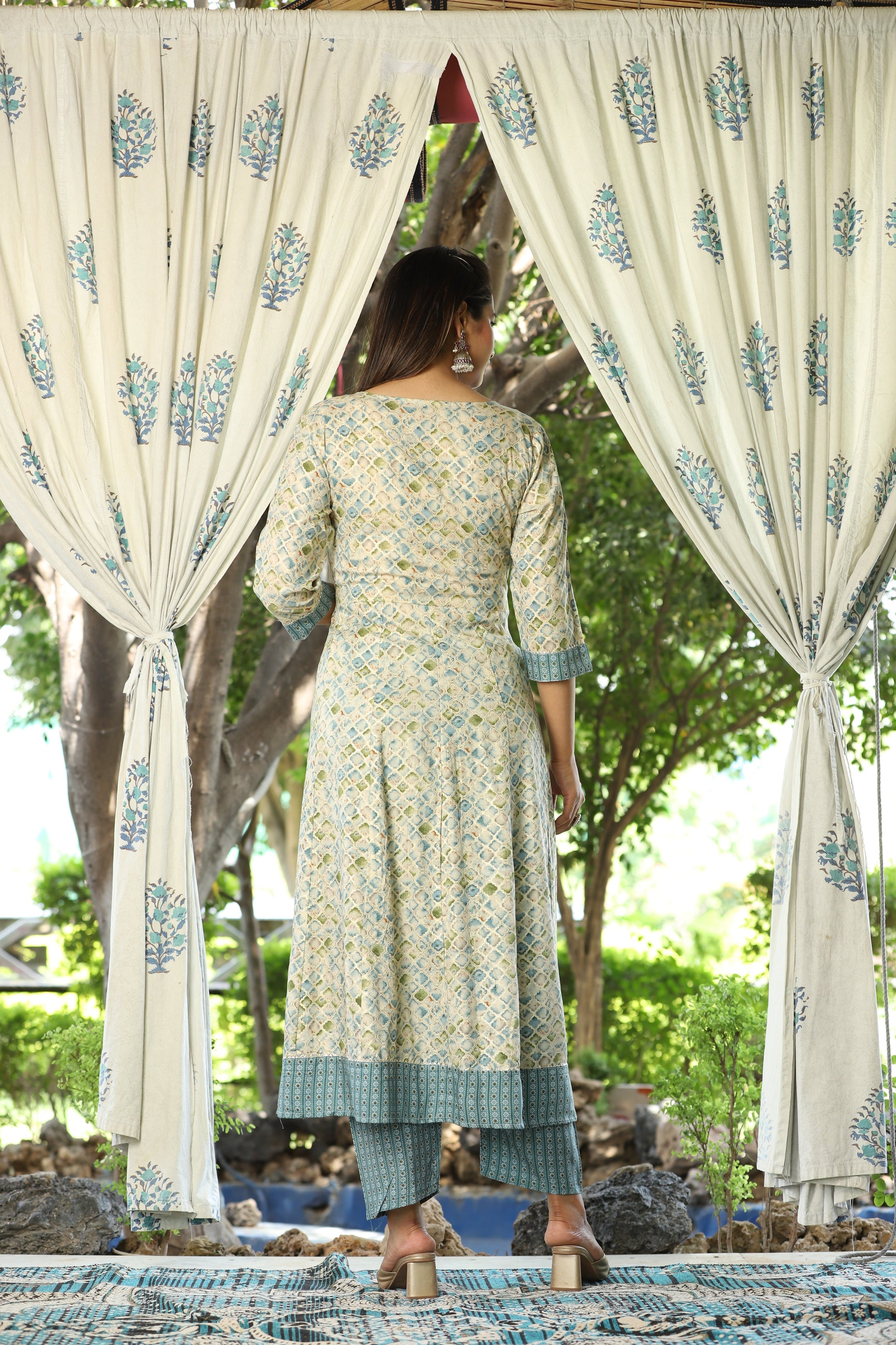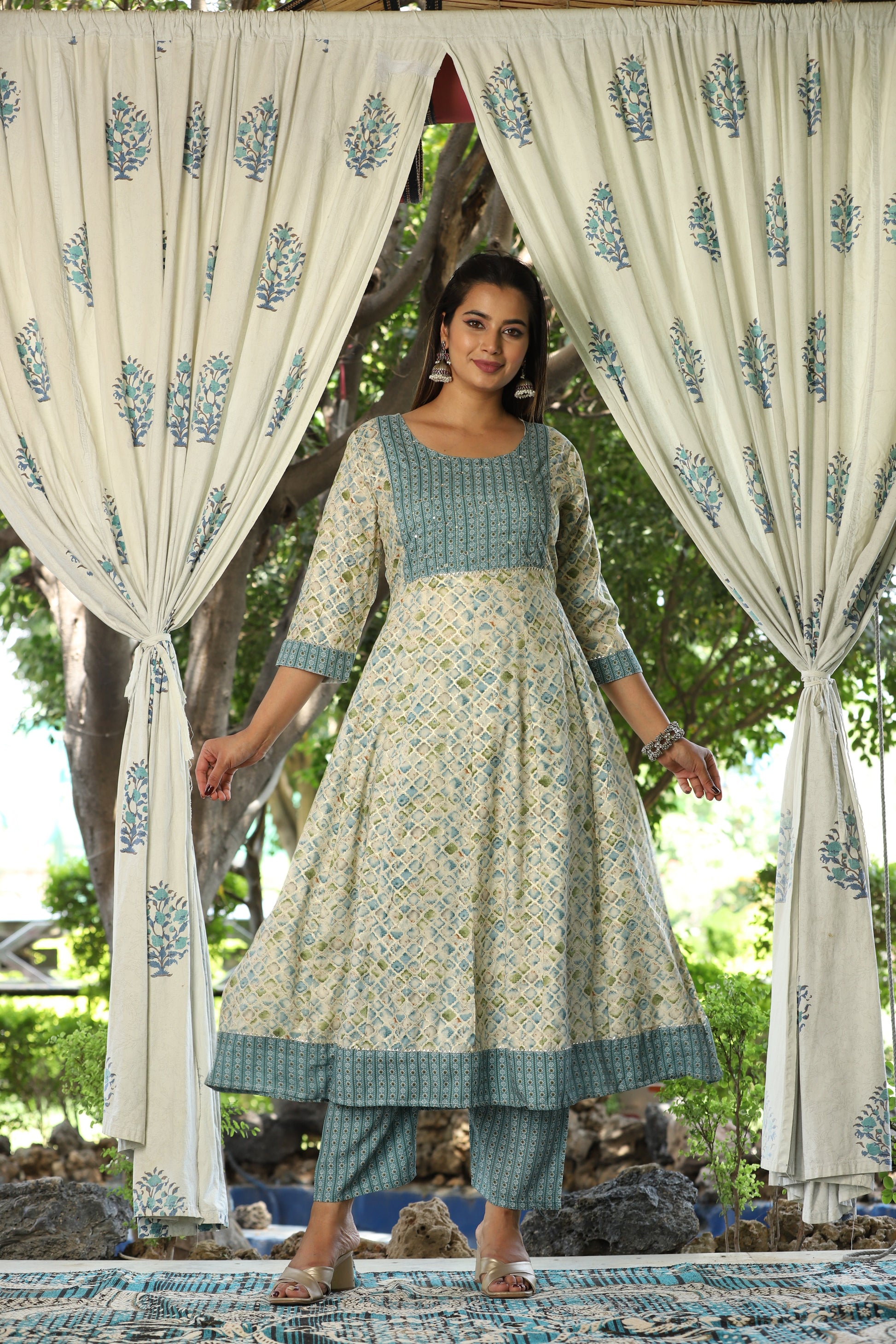 Multi Anarkali Rayon Printed Embroidered Kurta With Pant Dupatta