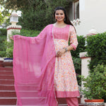 Pink Anarkali Rayon Printed Embroidered Kurta With Pant Dupatta