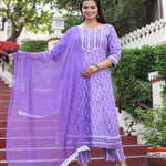 Blue Anarkali Cotton Printed Embroidered Kurta With Pant Dupatta