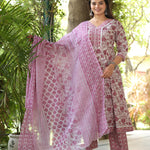 Multi Straight Cotton Printed Kurta With Pant And Dupatta