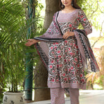 Multi Anarkali Cotton Printed Kurta With Pant And Dupatta